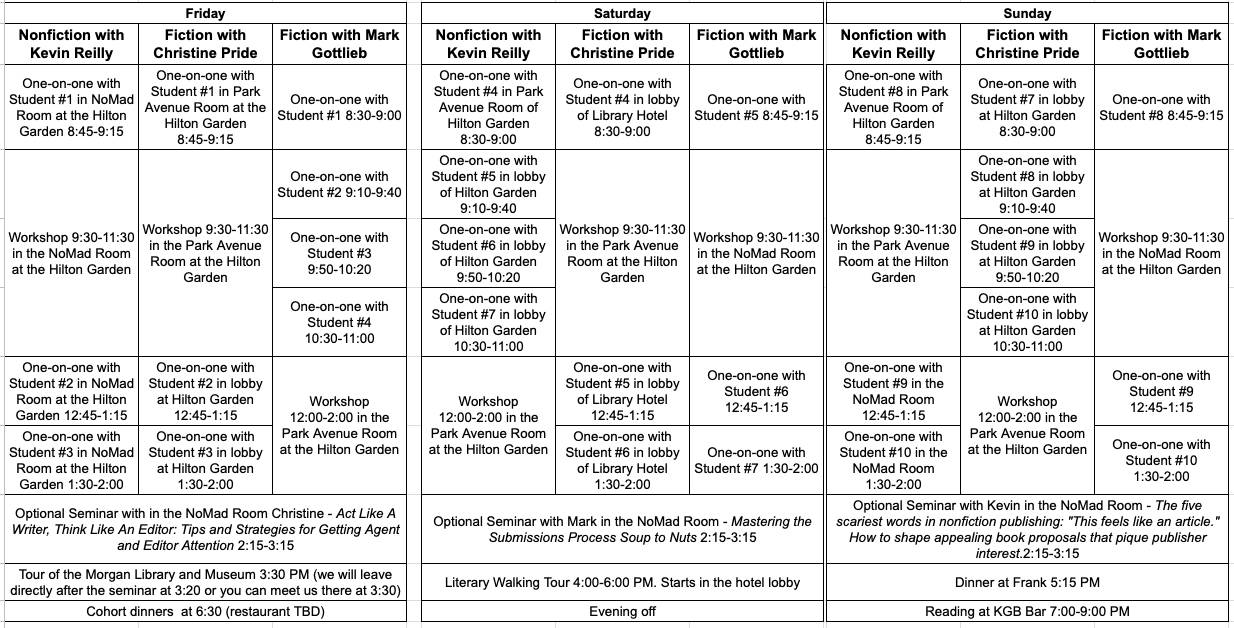 2026 NYC Publishing Workshop Schedule Detail